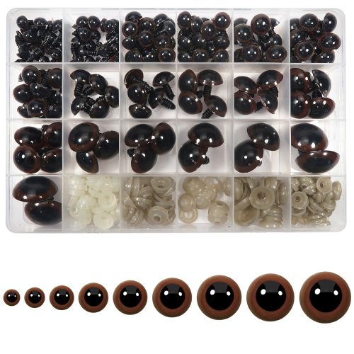 Brown Large Plastic Safety Eye Kit, 150pcs Of 8-24mm Size Doll Eye With Washer Set